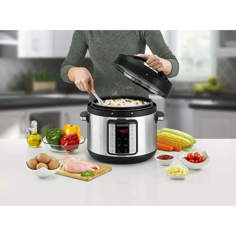 Black & Decker BD-PCP1010-B5 Electric Pressure Cooker is a versatile and efficient appliance designed for modern kitchens. Indeed, it combines functionality, convenience, and durability, making it an excellent choice for families. Furthermore, its 1000W power and 10L capacity provide ample space and speed for preparing large meals with ease.
