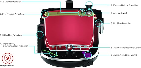Safety is a priority with the BLACK+DECKER Smart Steam Pot. It comes equipped with 9 built-in safety mechanisms, including overheating protection, a dual-purpose steam release valve, and a secure locking lid. These features work together to prevent accidents and ensure a secure cooking experience. You can cook with confidence, knowing that this appliance is designed with your safety in mind.