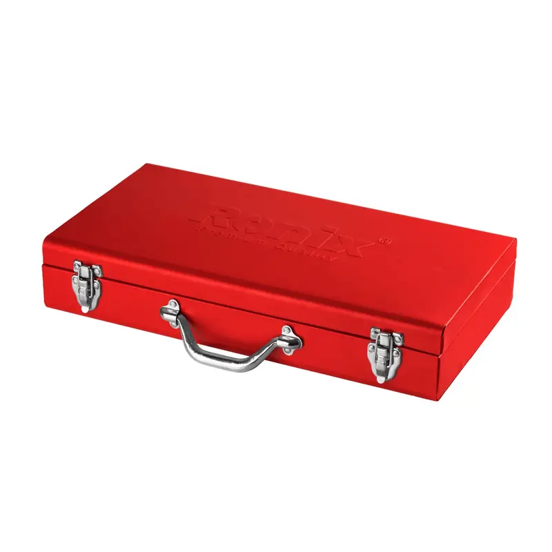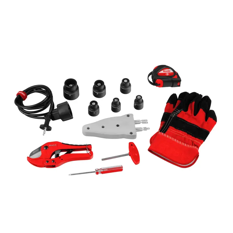Ronix RH-4401 Socket Welding Machine comes in a metal case. There is an extra heating plate, safety gloves, 5m measurement tape, PVC cutter, hex key, screwdriver, 2 sockets of 20mm, 2 sockets of 25mm, a 32mm socket, a 40mm one, and a frame. It also has a 3-meter-long extension cord to enable you to move quickly.