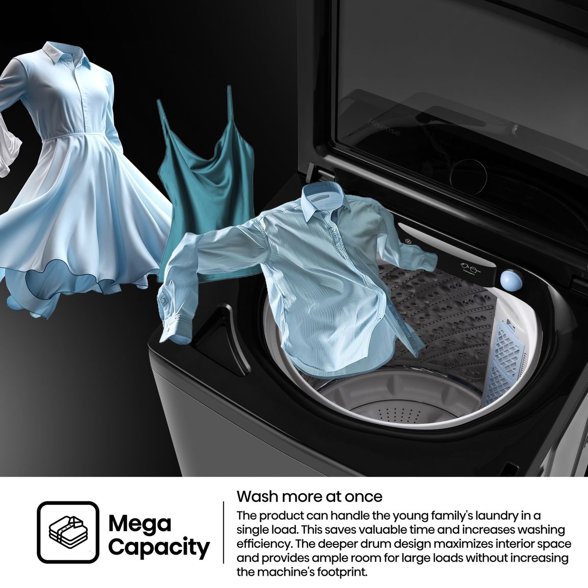 - Direct Drive Inverter Motor for efficiency and durability