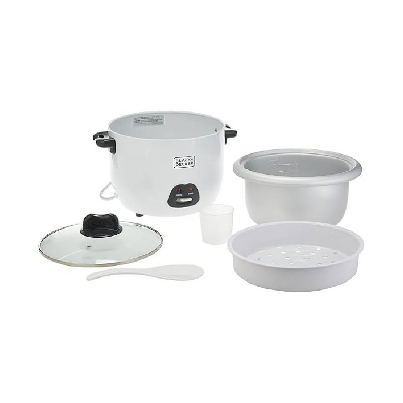 The Black+Decker RC1850-B5 is a countertop rice cooker designed for families or frequent rice consumers. Moreover, its 1.8-liter capacity (roughly 10 cups) makes it ideal for preparing meals without constant refilling. In addition, this model balances performance and simplicity, so that users get fluffy rice with minimal effort.