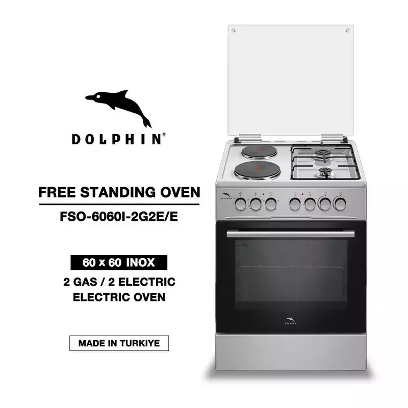 Introducing the Dolphin FS06060I-3G1E/E Free Standing Oven, a stylish kitchen addition crafted in Turkey. This sleek Inox electric oven combines elegance with functionality, offering precise temperature control and even heat distribution for perfect cooking results. With a spacious 60*60 size, 3 gas burners, and 1 electric burner, it provides versatility for various culinary needs. Upgrade your kitchen with this reliable appliance that promises convenience and culinary excellence.