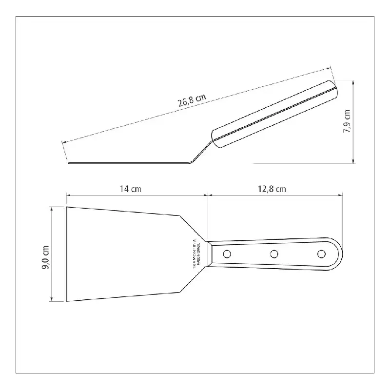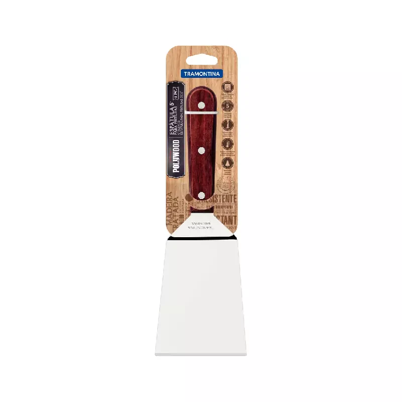 The Tramontina 5-inch frying spatula with stainless-steel blade and treated red Polywood handle will be your biggest ally when preparing grilled foods. Ideal for use on griddles, it features a stainless-steel blade and treated Polywood handle secured with aluminum rivets, a utensil that ensures strength and durability. It is perfect for frying, flipping and serving foods and it will make your daily routine in the kitchen much easier!