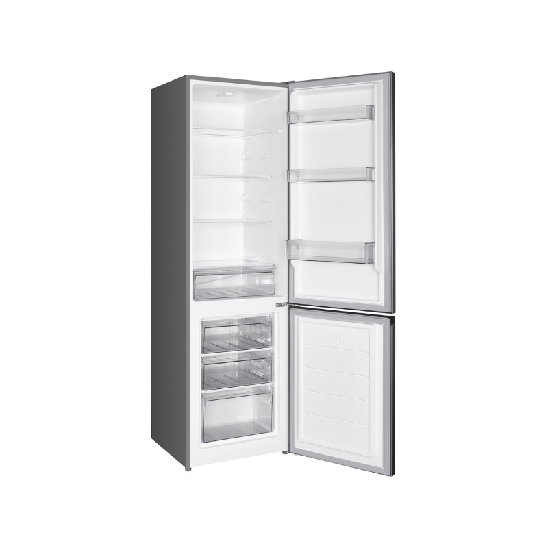 The Tesla Refrigerator Bottom Freezer is a stylish and efficient bottom-freezer refrigerator designed for modern kitchens. With a total net volume of 262 litres and an elegant inox finish, it offers practical functionality and contemporary aesthetics. The manual-defrost freezer section is conveniently located at the bottom, making access to commonly used fresh-food compartments easier. Inside, LED lighting, spill-safe shelving and a reversible door design enhance convenience and flexibility.
