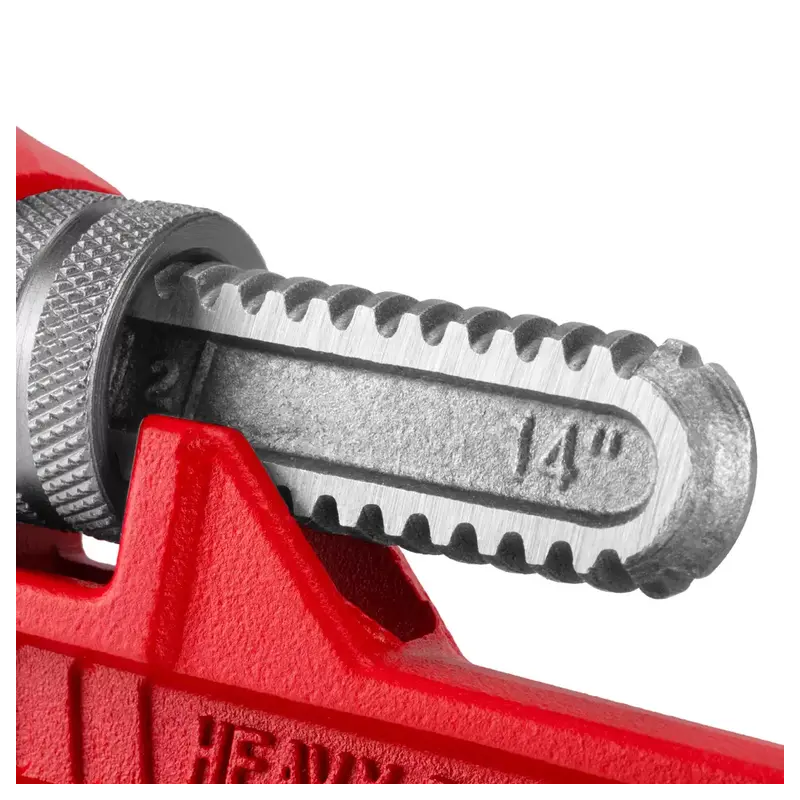 Our pipe wrenches feature an ergonomic body and a handle at the end. This handle makes them easier to carry and store.