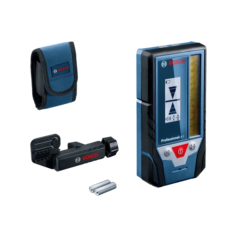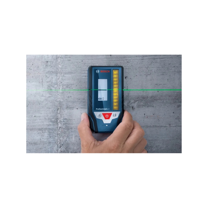 The Bosch Professional Laser Receiver LR 7 is a versatile detection tool designed to work seamlessly with both red and green laser lines. With a large 8 cm reception area, it enables fast and accurate detection of laser planes, even over longer distances or in bright lighting conditions. Visual indicators (LEDs and display) combined with audible signals ensure precise alignment in any environment. Compact, reliable and easy to operate, the LR 7 is ideal for construction, interior installation, metal framing, and layout applications.