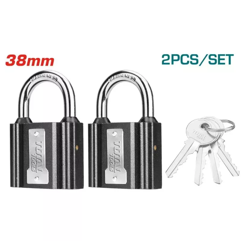 Total Iron Key Alike Padlock 38mm with Waterproof Rubber Cover, Iron Brass, 4 keys 2pcs Set TLK31T2382