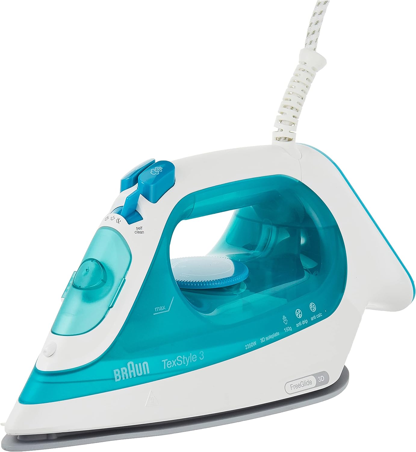 The Braun TexStyle 3 has been upgraded with a fresh new look, With a powerful 2350 wattage, this iron delivers quick and effective results every time. Super ceramic soleplate with Free Glide 3D technology, the iron effortlessly glides over any fabric, The precision tip allows for easy access to hard-to-reach areas, Thanks to its rapid heat-up time of only 35 seconds, The anti-drip system ensures that no water droplets escape from the iron. The self-clean feature ensures that the iron stays in top condition, while the easy-fill water tank makes topping up the iron with water a breeze.