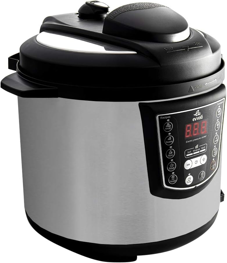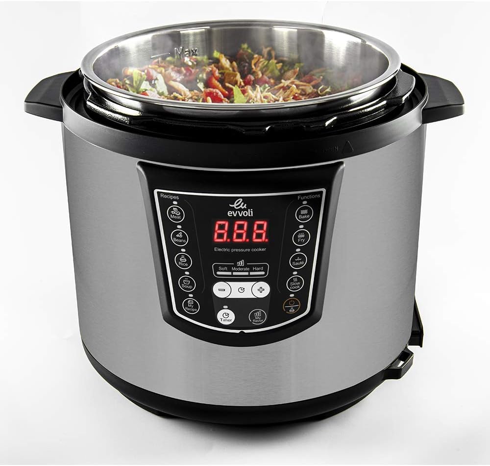 - 1000W power 6 liter capacity, Cook fast and save time, The evvoli Multi-Cooker combines 9 Appliances in one, Easy-touch control panel with 9-in-1 cooking functions