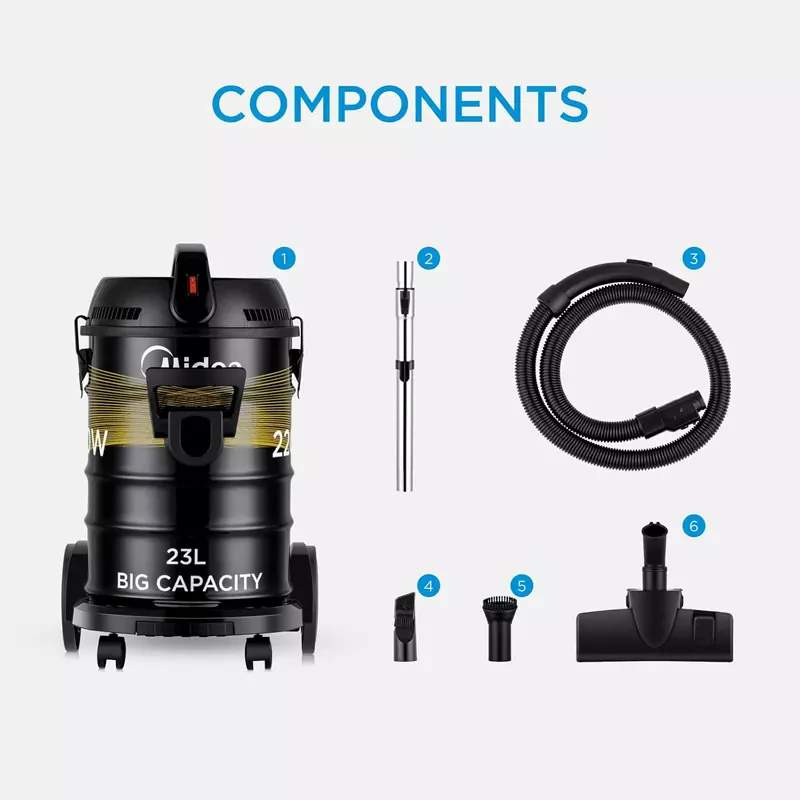 Tackle tough cleaning tasks with the Midea Vacuum Cleaner Drum Type, designed for powerful suction and large-capacity cleaning. Its durable drum design is ideal for heavy-duty use, while the versatile attachments make it suitable for various surfaces. Perfect for homes, offices, and workshops.
