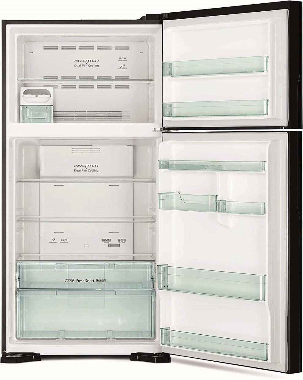 Hitachi 500L Double Door Refrigerator, No Frost, Top Freezer, Inverter & energy efficient R-V800PUN7K BBK-BSL