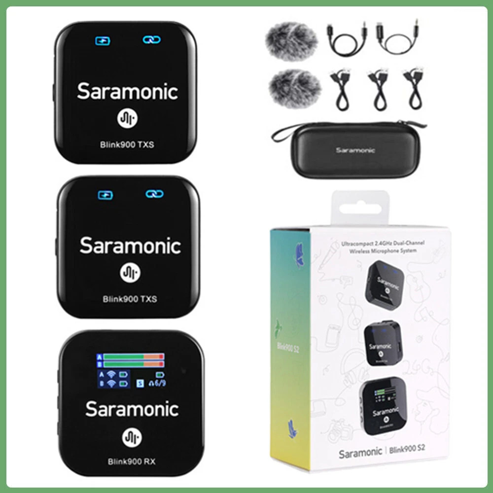 The Saramonic Blink900 S2 is an ultracompact 2.4GHz dual-channel wireless microphone system designed for up to two people. Lightweight, easy to use, and highly reliable, it delivers broadcast-quality sound for video production, interviews, online teaching, livestreaming, and more.