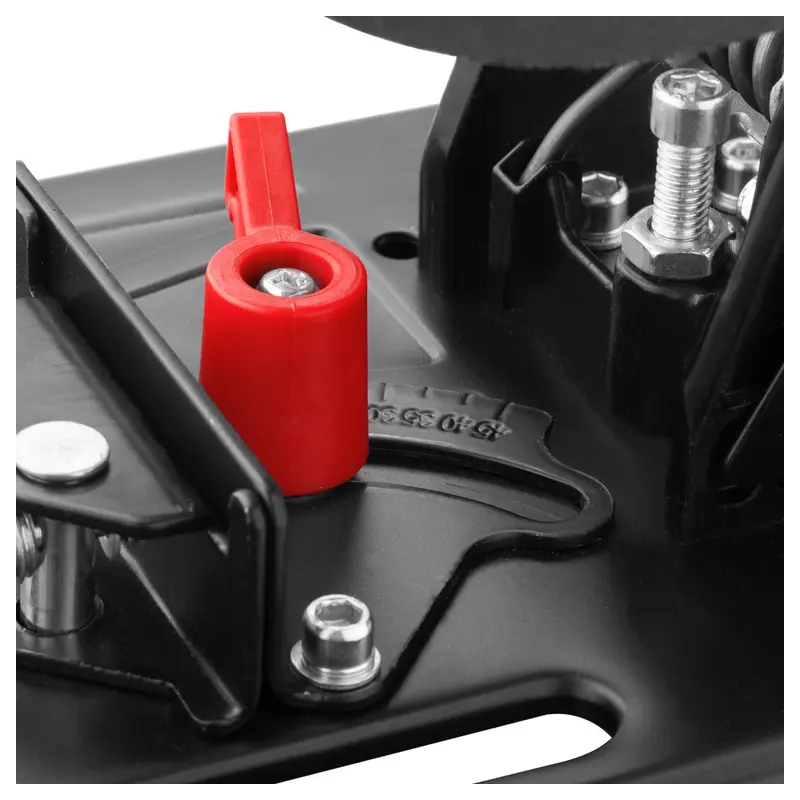 The fence adjustment mechanism allows the users to achieve optimal cutting position and miter cuts up to 45°.