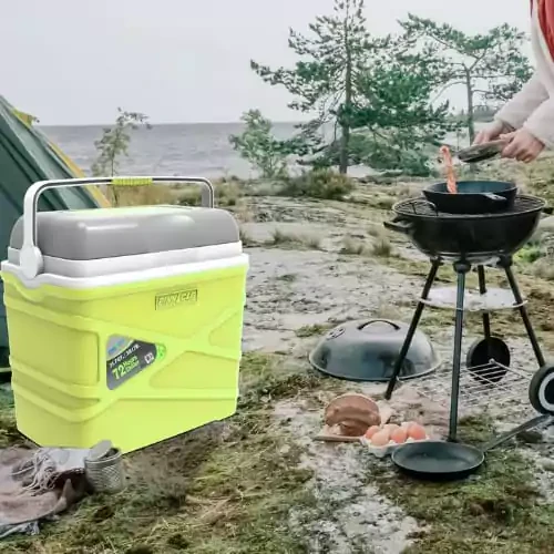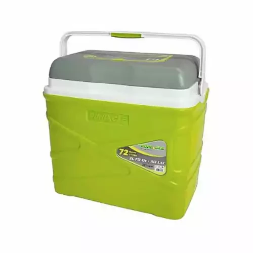 This lightweight and portable ice chest boasts a generous 30 liter capacity to keep your drinks and food chill for extended periods. It is made from durable plastic, insulated with polyurethane foam and has smooth interior and exterior surfaces to simplify cleaning.