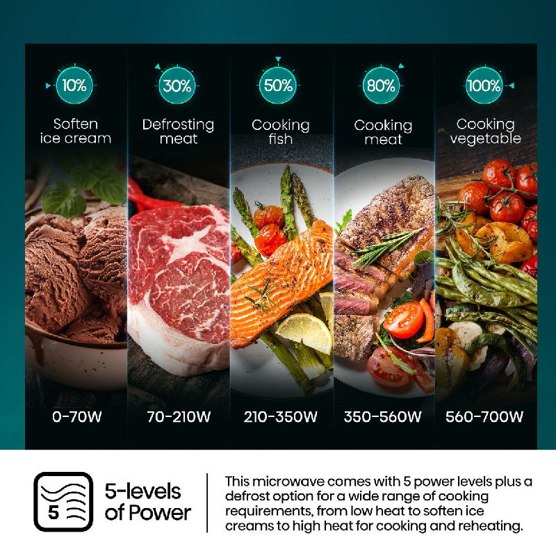 - 700W microwave output with 5 power levels