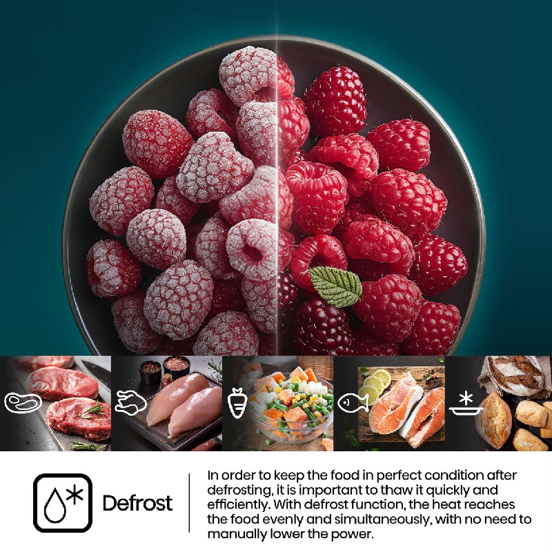 - Defrost function for added convenience