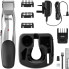 - Kit includes everything you need to achieve your desired look including rechargeable trimmer, 3 x close trim attachment combs, 1 x 6 position adjustable attachment comb, storage/charge stand, moustache comb, blade oil, cleaning brush and instructions