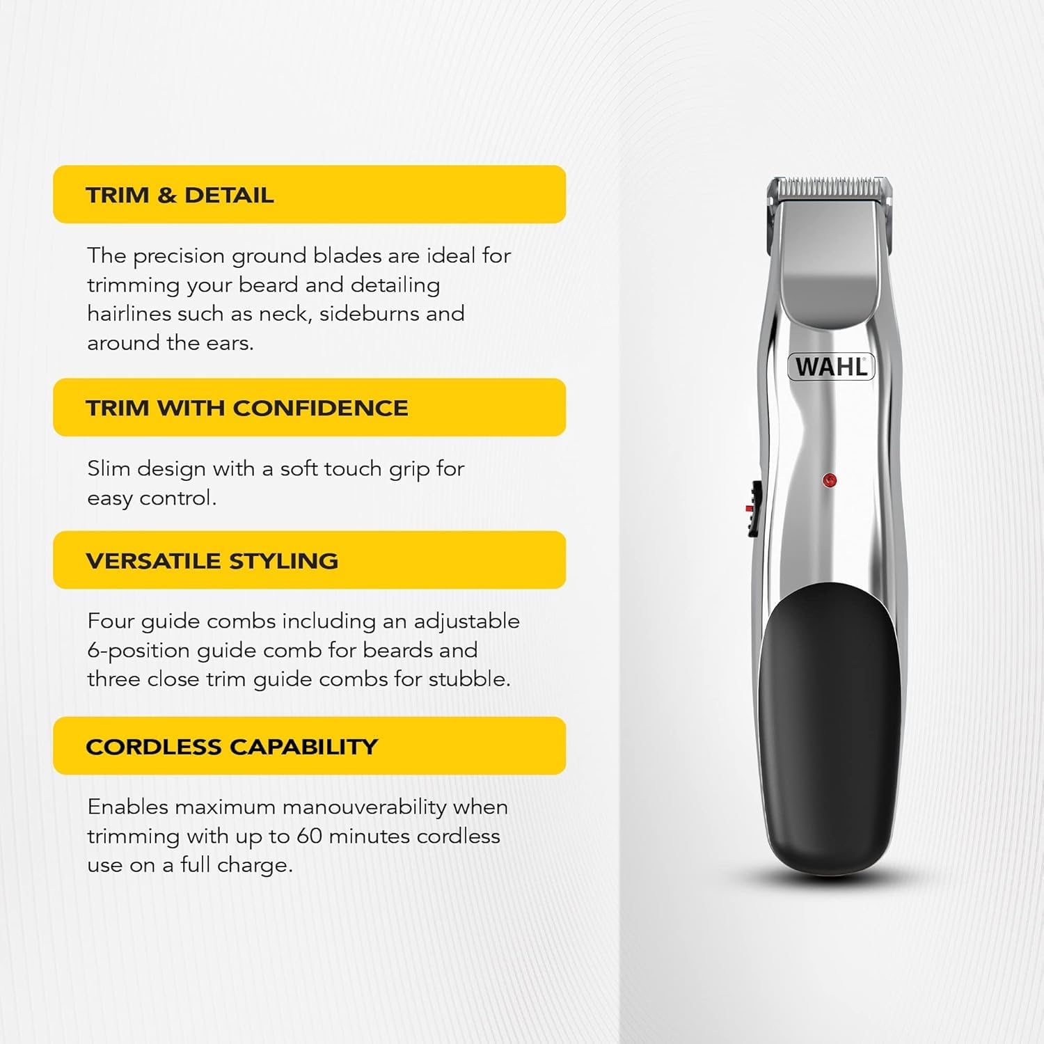 Ideal for trimming beards, stubble and hairlines, the Wahl Groomsman Trimmer gives you the freedom of cordless trimming with 60 minutes run time. Suitable for: Short Beard, Stubble