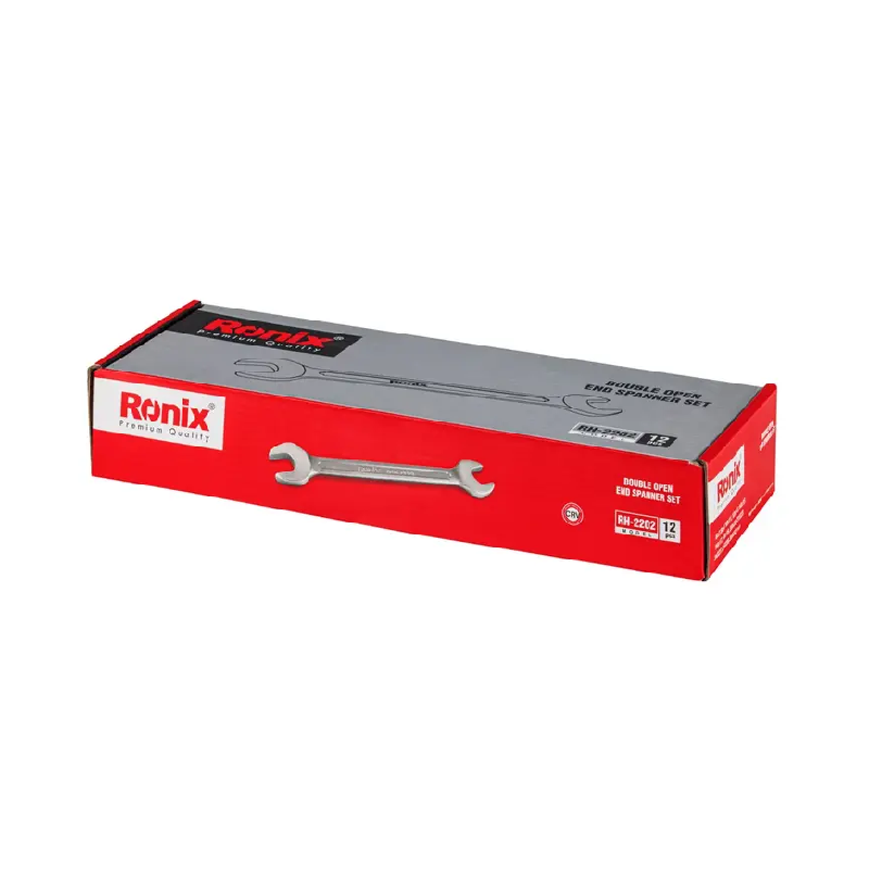 Ronix RH-2202 12 Pcs Double Open-Ended Spanner Set consists of high-quality, durable, user-friendly, and versatile spanners. Our Double Open-Ended Spanner Set features 12 metric spanners with the following sizes: 6×7 mm, 8×9 mm, 10×11 mm, 12×13 mm, 14×15 mm, 16×17 mm, 18×19 mm, 20×22 mm, 21×23mm, 24×27 mm, 25×28 mm, 30×32mm.