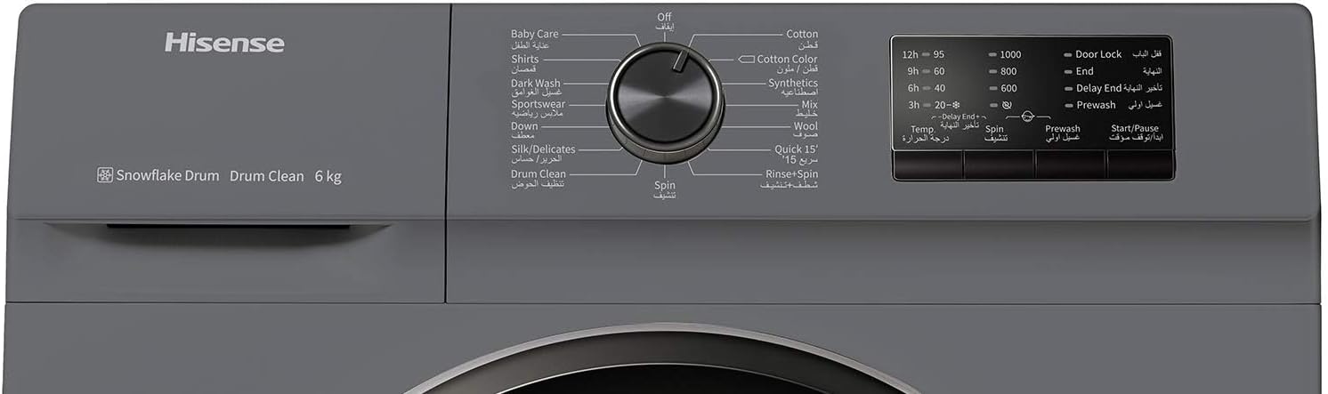 - Hisense 6Kg Front Loading Washing Machine 1000 RPM Free Standing Silver Model WFVC6010T 1 Years Full Warranty.