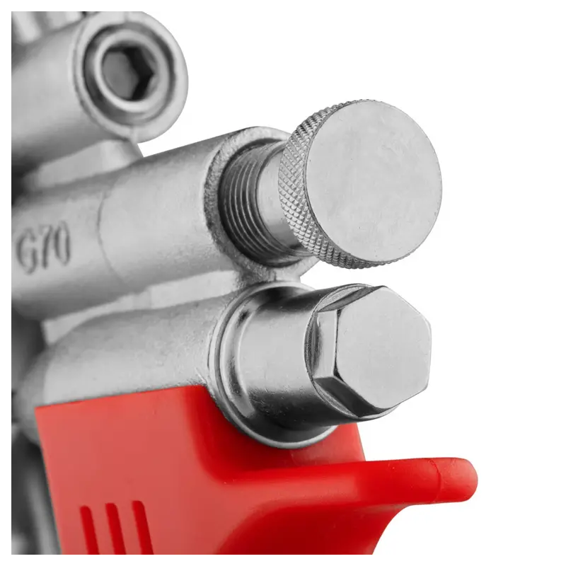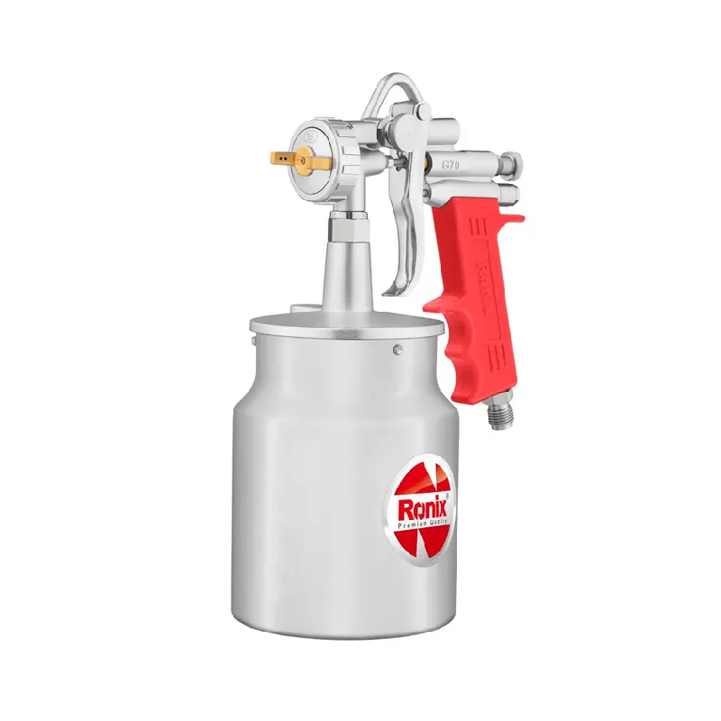The Ronix RH-6408 sprayer features an exclusive air valve design in its polished 1000cc aluminum cup. Meaning it is super lightweight and easy to clean. Also, its one-piece all-steel gun body, rust-resistant stainless-steel nozzle and solid brass cap all ensure premium durability.