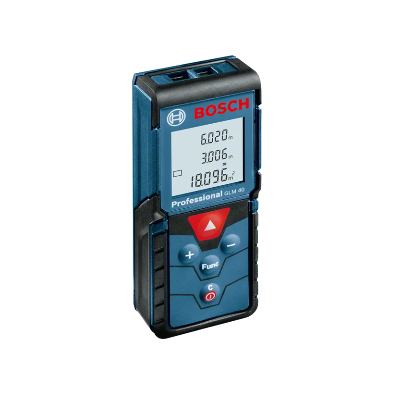 Take advantage of a wide range of measurement modes in a single compact design with the Laser Measure GLM 40 Professional. This intuitive tool provides all significant measurement modes in one: standard length, surface and, volume calculation as well as indirect height measurements. It features an easy-to-read illuminated screen that displays the last three measurement results for quick reference. The laser measure also has a memory function that saves the last 10 measurements for time-efficient use.