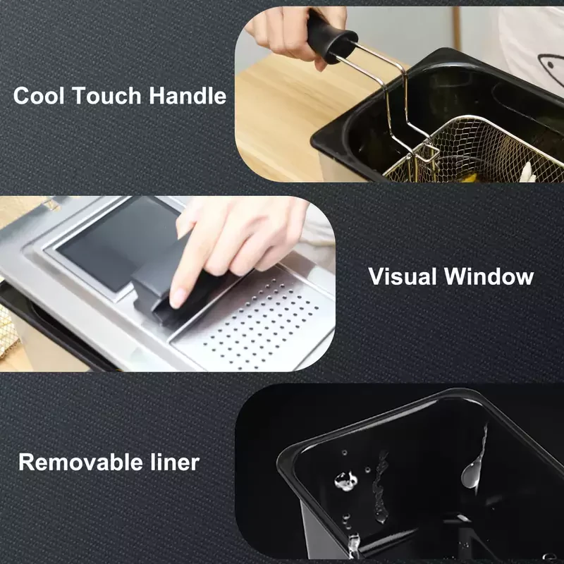 - Function: Adjustable Thermostat Control, Detachable Oil Container, Non-Stick Cooking Surface, Overheat Protection, With Light Indicator, With Observation Window