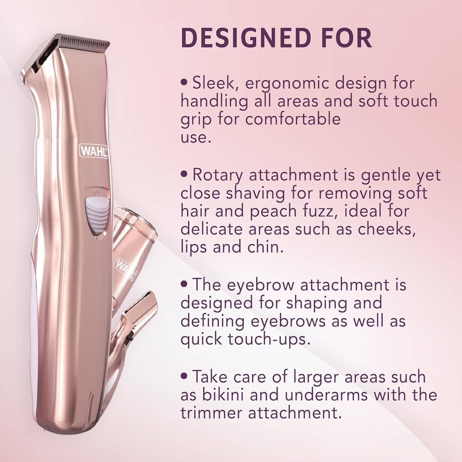 - IDEAL FOR DELICATE AREAS – this portable trimmer is designed to painlessly remove hair and peach fuzz from delicate areas such as cheeks, lips and chin. Designed to remove soft hair and peach fuzz quickly and painlessly. Gentle yet close shaving, the rotary head leavers your skin soft and smooth without irritation