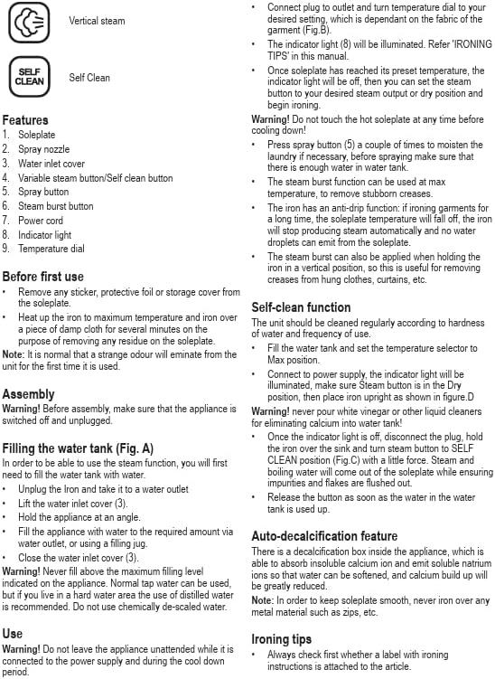 This Black and Decker iron is designed to give you quick and precise results when you iron your clothes. With the variable temperature and steam control, ironing any fabric becomes an effortless job. The steam burst feature enables this iron to apply continuous steam output while dealing with tough creases. The anti drip function prevents leaking of water when the iron is at a low.