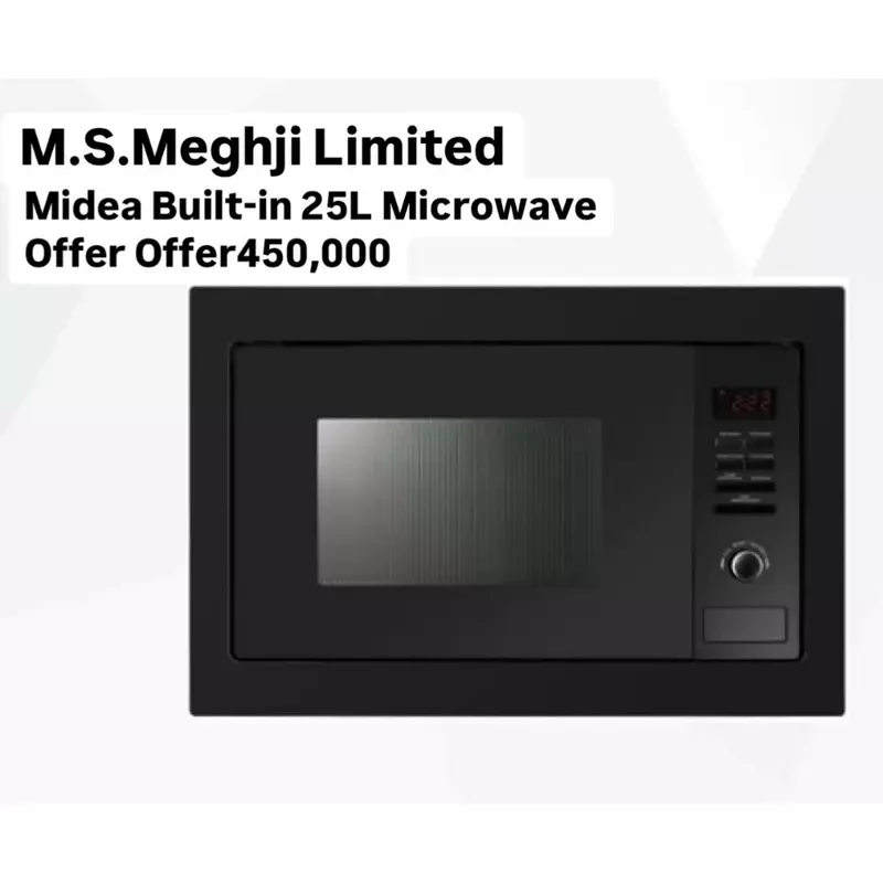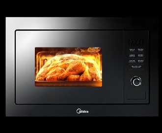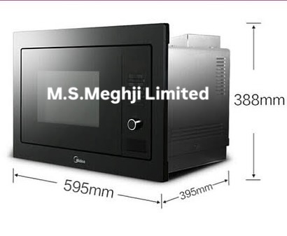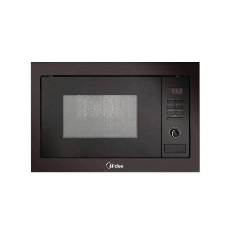 Midea AG925BVE-BK Built-In Microwave Oven in Inox color, 25L capacity with Grill function (1000 W). Features 2 heating functions, for defrosting, warming up and perfect preparation of your food, 5 power levels, side door opening, LED display with knobs control, inner surface made of stainless steel, inner Light and 8 Preset Programs.