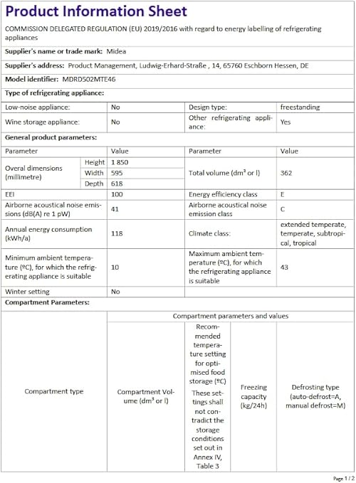 Introducing the Midea MDRD502MTE46 Upright Fridge E Rated in Inox – the perfect addition to any modern kitchen. With its sleek and stylish design, this fridge is not only aesthetically pleasing but also packed with features that make it stand out from the competition.The multi air flow system ensures that the temperature is evenly distributed throughout the fridge, keeping your food fresh for longer. The super cool function is perfect for when you need to quickly cool down your groceries after a big or when you have guests over.The digital control allows you to easily adjust the temperature and settings to your liking. The total no frost feature means you never have to worry about defrosting your fridge again, saving you time and hassle.With its low noise operation, you won't even notice it's there. The reversible door means you can choose which way it opens, making it easy to fit into any space. The external electronic controls make it easy to adjust the temperature and settings without having to open the fridge.Overall, the Midea MDRD502MTE46 Upright Fridge E Rated in Inox is the perfect combination of style and functionality. Its innovative features make it the perfect choice for any household looking for a reliable and efficient fridge.